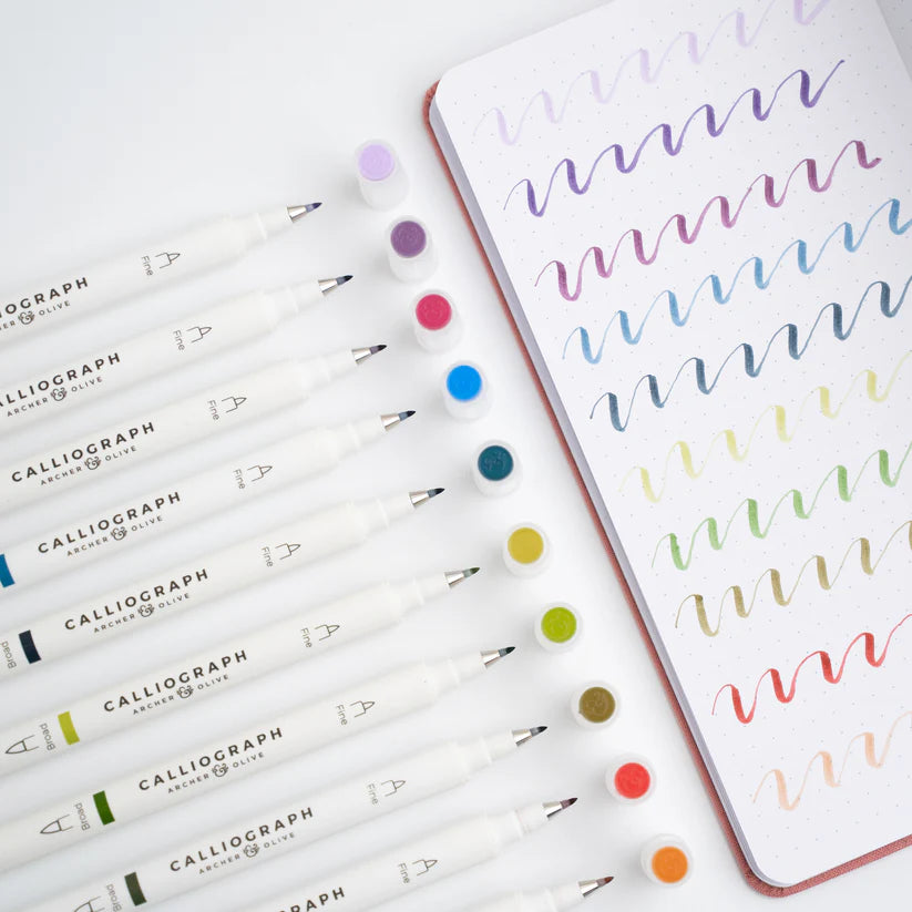 Bring a little magic to every page with the Enchanted Chapters Calliograph Pen Set. This beautifully curated collection of dual-tip brush pens features a dreamy range of colors perfect for lettering, journaling, note-taking, and creative projects. Designed for smooth, vibrant writing, these pens make it easy to add elegant hand-lettered touches, soft shading, and colorful details to planners and stationery.